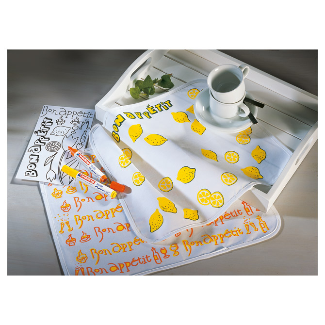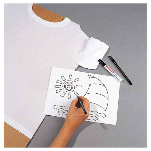 Marker za tekstil 2-3mm pk5 Edding 4500 blister, permanentni, pigmentni marker za majice (pamuk, svila, lan…); okrugli vrh; širina ispisa 2-3 mm; vodootporan; otporan na svjetlo; za fiksiranje glačati bez pare; nakon fiksiranja otporan na pranje do 60° C; brzo se suši; set od 5 boja: crna, crvena, plava, zelena i žuta; blister